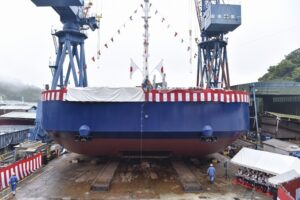 第1157番船 2,700DW型貨物運搬台船 命名・進水式