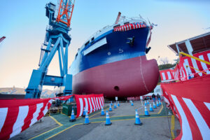 第1156番船 13,000総トン型重量物運搬船「GIGA TRANS」 命名・進水式